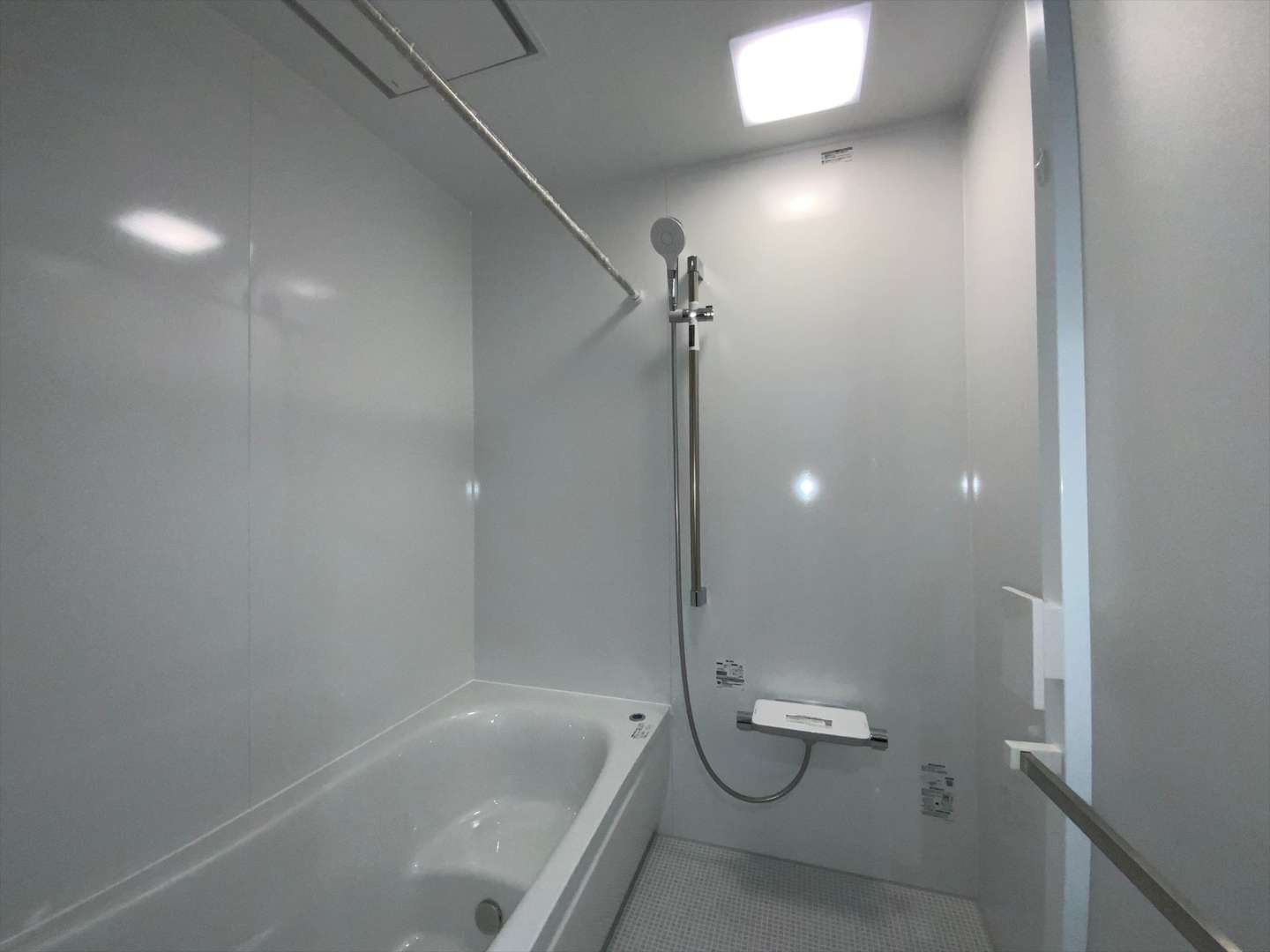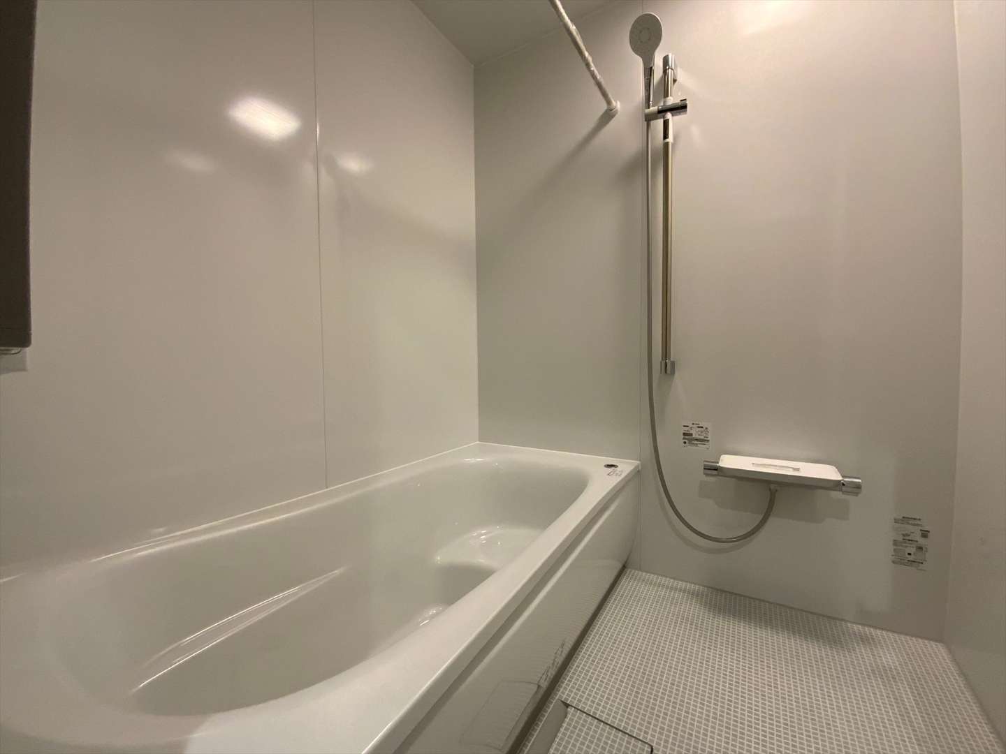 ミラーキャビネットの下には、施主様こだわりのタイルを貼付ました。