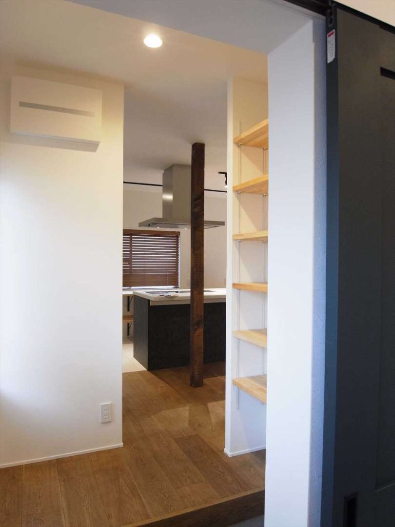 生活感のある水回り等は、造作の間仕切りで視界を遮りながらLDK内で空間を繋げました。回廊式にし...