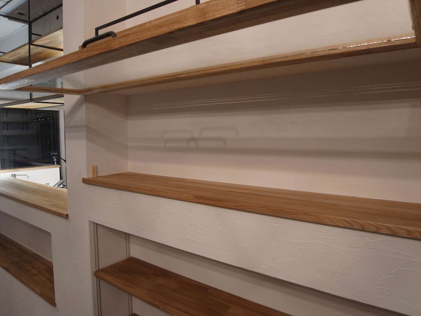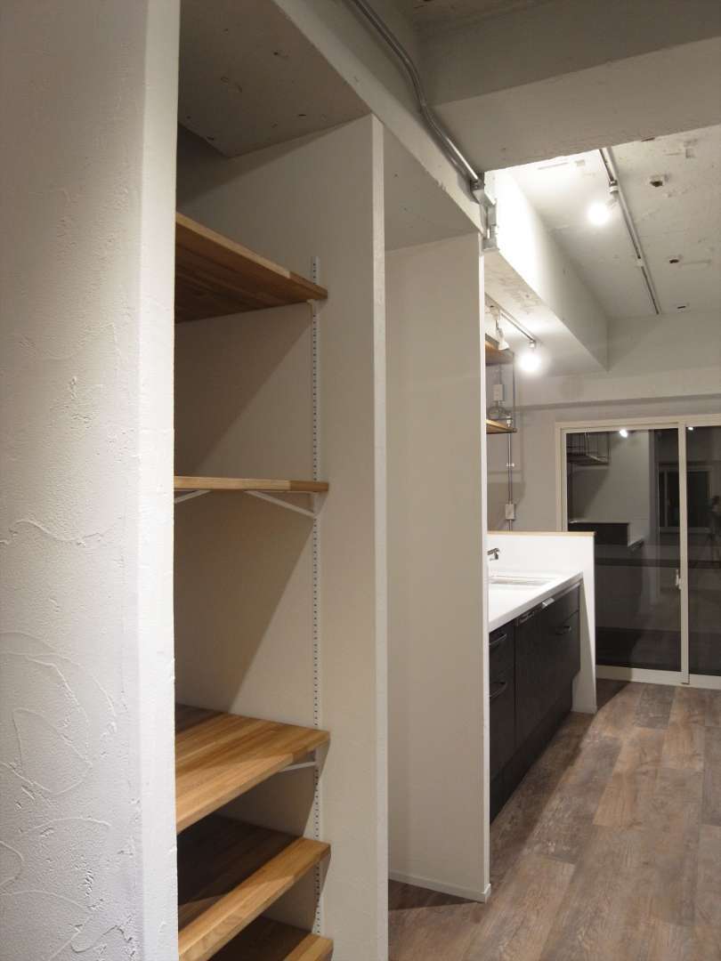 また、冷蔵庫横には可動棚を設置し、パントリーの役割を果たしています。
