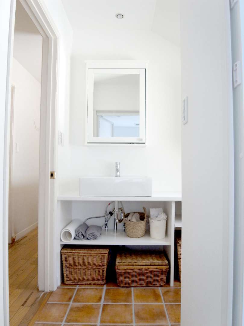 こだわりの洗面台は木のぬくもりを感じられ、それでいてシンプル・ナチュラルなものを目指して