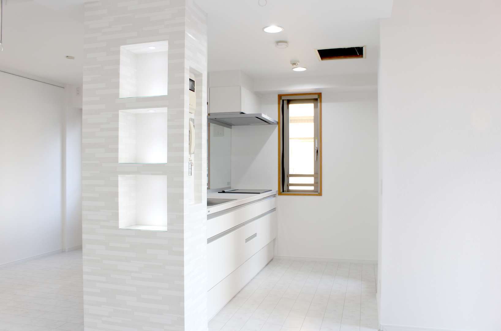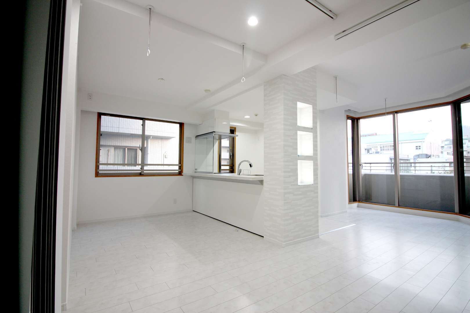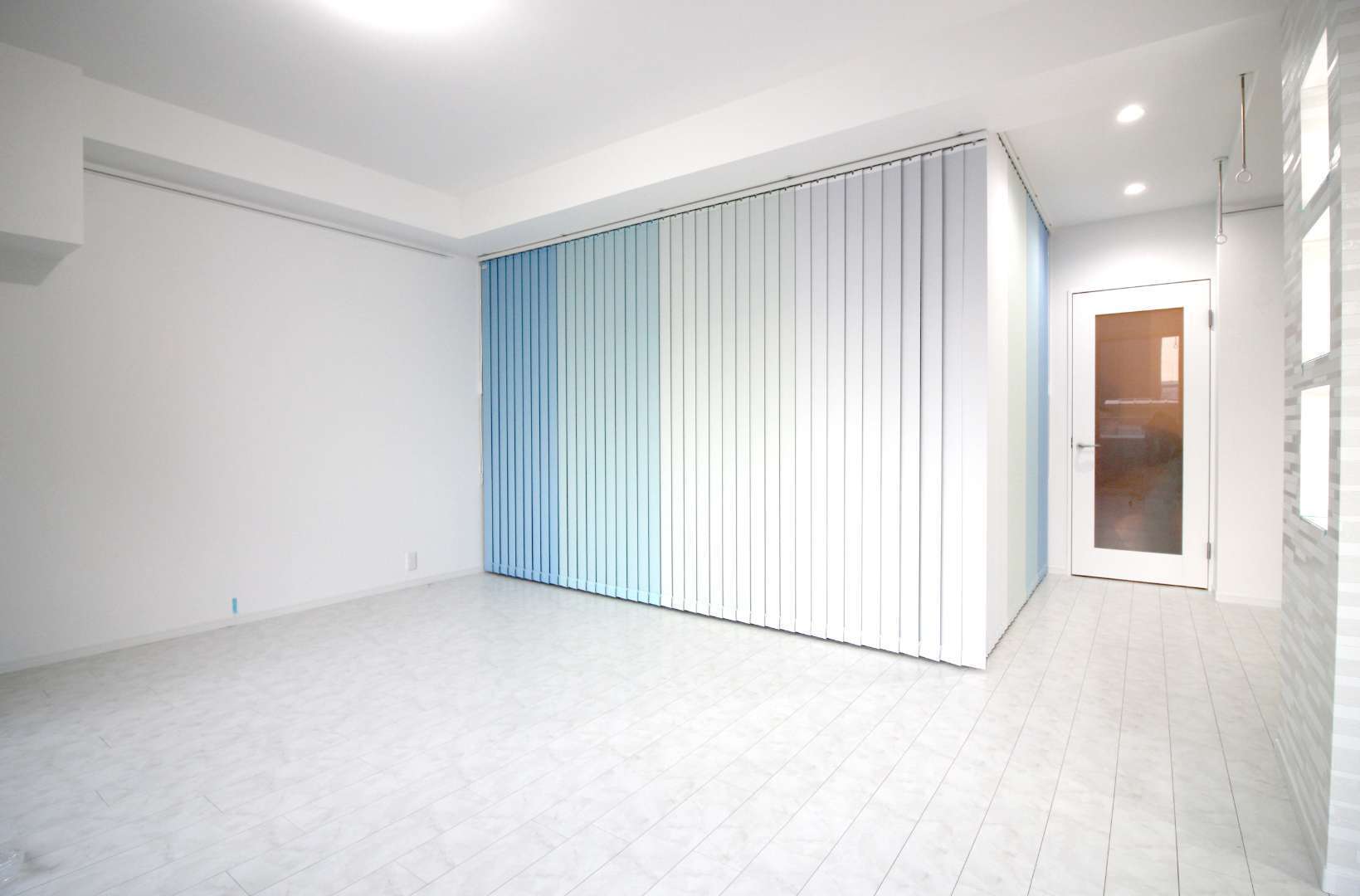 M様ご希望の明るく可愛らしいデザインになるよう白で統一し、リビングダイニングと、洋室、和室をつなげて広々としたLDKを作りました。