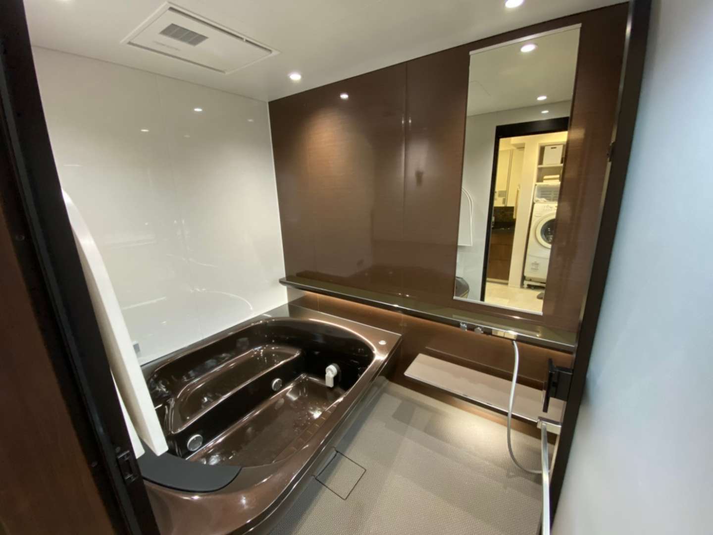 こだわりのひとつだった、広いバスルーム。ゆったりと寛げる広々とした浴槽は落ち着いた雰囲気を演出できるブラウンをご選定いただきました。