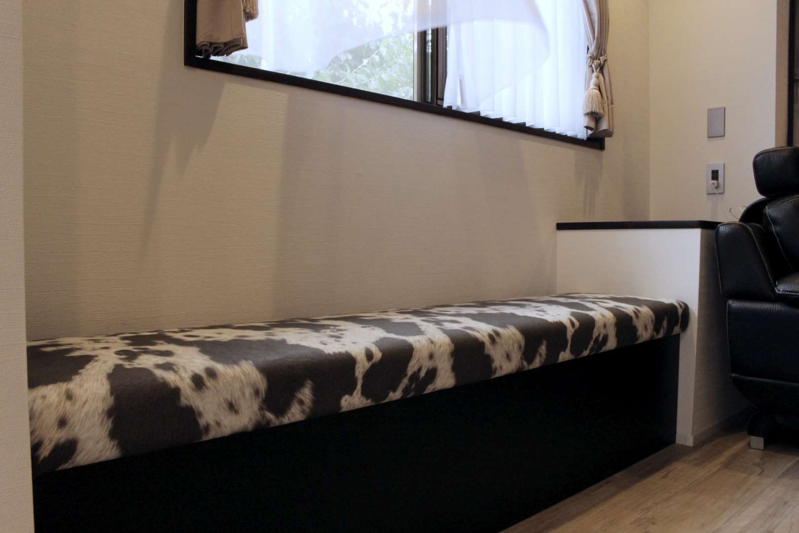 既存の間取りだと窓の前にぽっかりと空間ができてしまう構造となっていました。この空間を活用するため、造作のソファの設置をご提案させていただきました。リビングに収納が少ないこともあり、この造作ソファは座面を上げると収納になるよう設計しています。