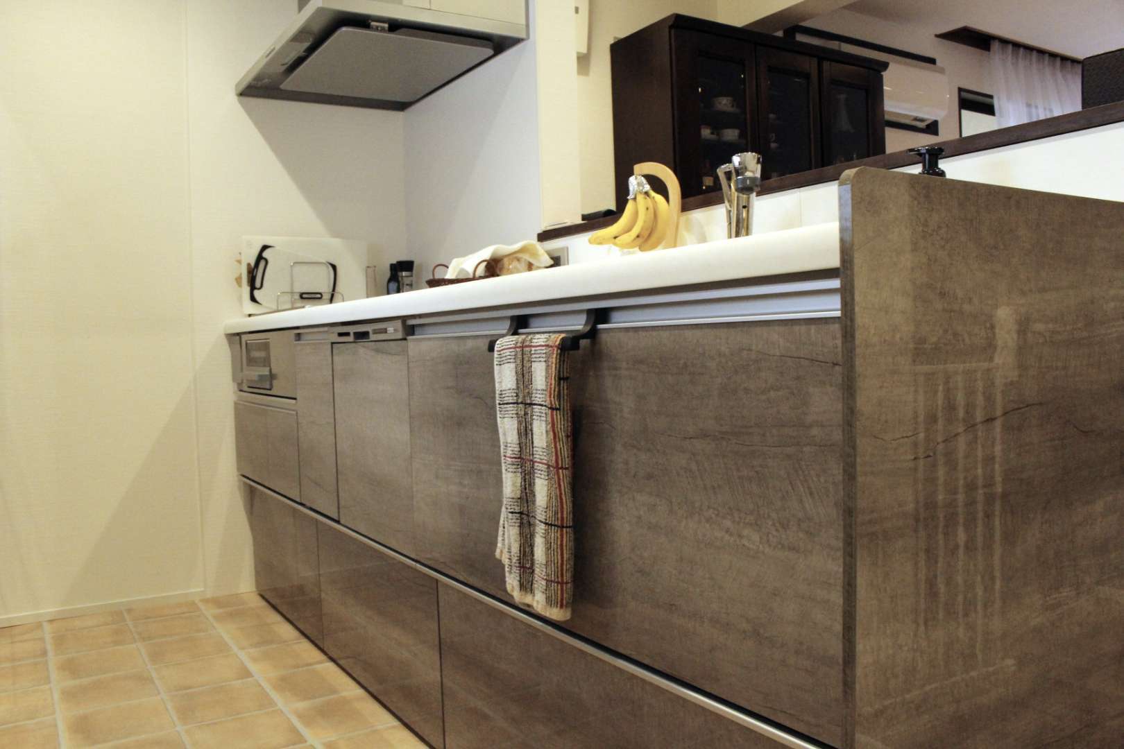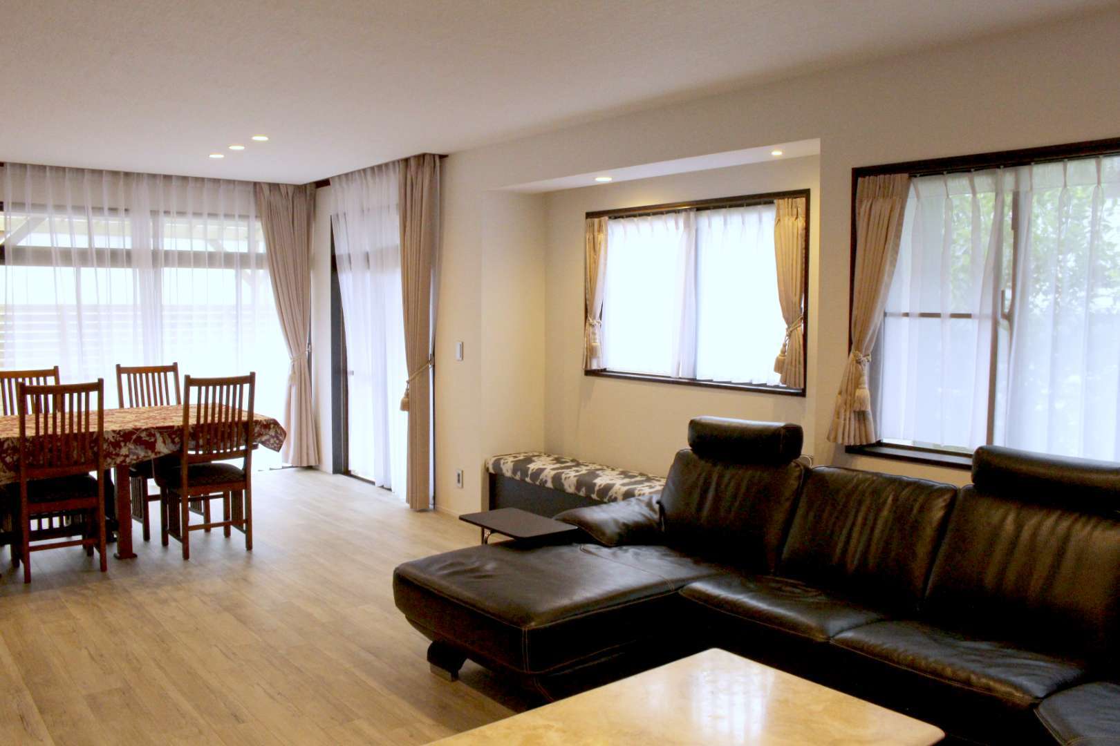 中古物件を購入されたT様。既存のお家は綺麗でしたが、赤茶色の木目が多く壁も多い和のテイストが強い雰囲気でした。LDKを広くとり、全体の雰囲気もシックにまとめて落ち着いた雰囲気にされたいとのご希望でした。