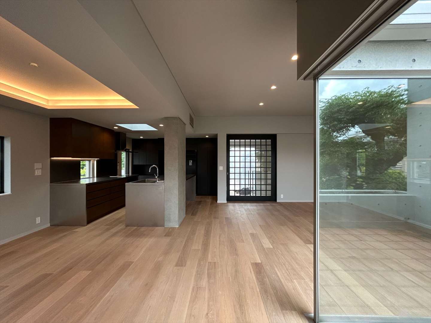 大開口の掃出しサッシがあり庭の借景で落ち着ける空間となりました。